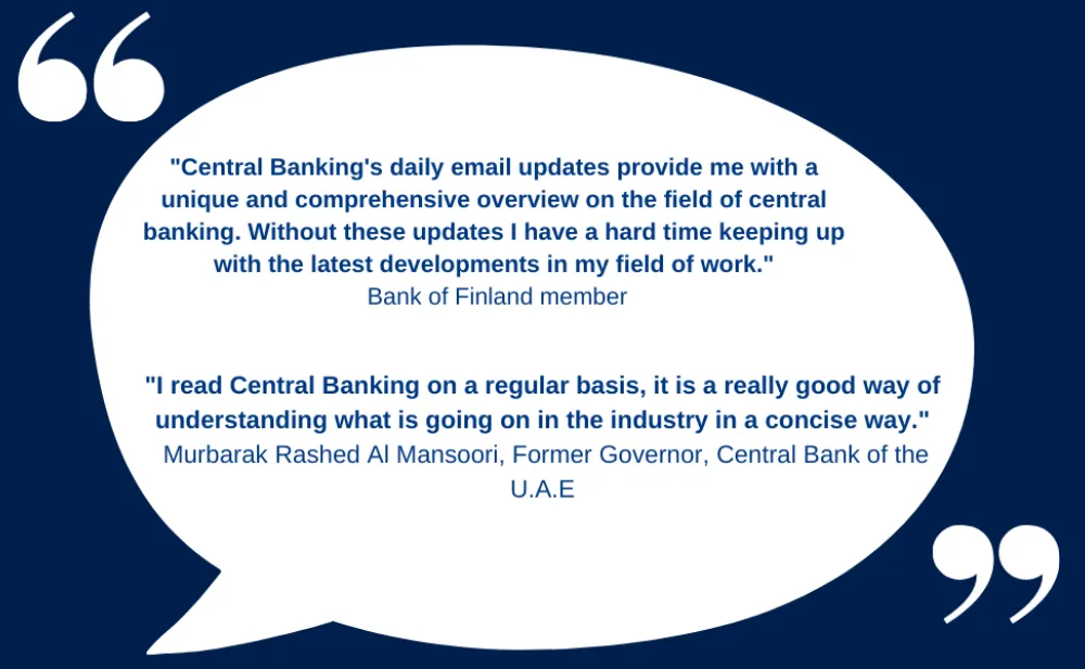 Central Banking's daily email updates provide me with a unique and comprehensive overview on the field of central banking. Without these updates I would have a hard time keeping up with the latest developments in my field of work.